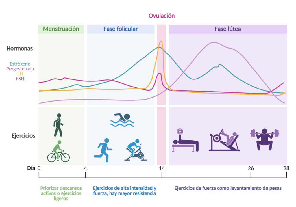 Como mencionamos anteriormente, dos de las principales hormonas que influyen en el rendimiento durante el ciclo menstrual son el estrógeno y la progesterona [1].