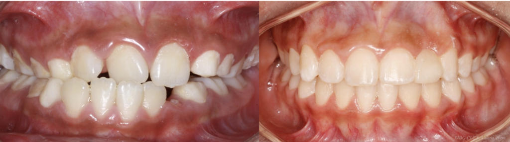 Los dientes mal posicionados o empalmados dificultan el cepillado y el uso del hilo dental, aumentando el riesgo de caries y enfermedad periodontal. Al alinear los dientes, se facilita la higiene y se promueve la salud bucal (Figura 2).